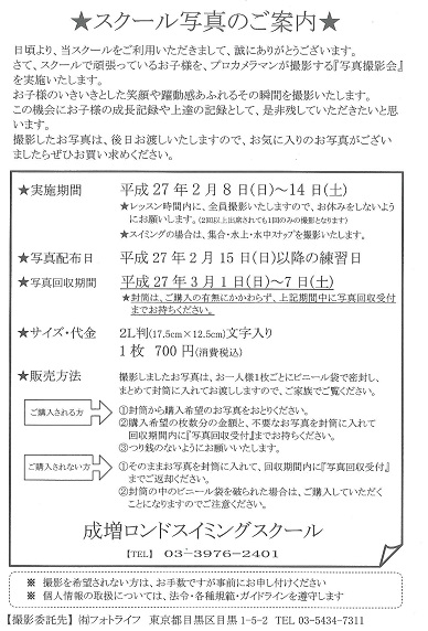 ☆スクール写真について☆