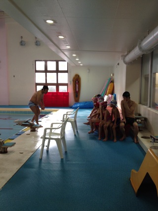幼児水泳大会に出場するお友だちが集まって、